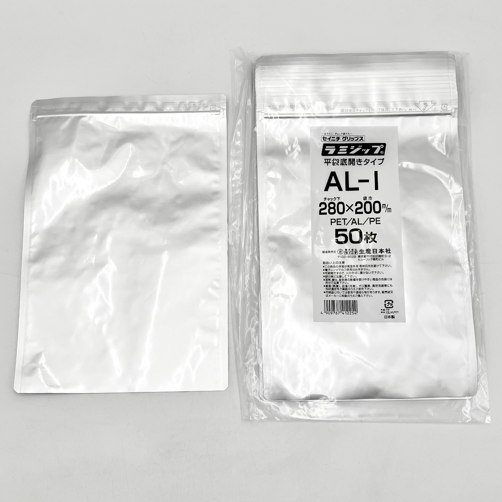 アルミラミジップ(底開きタイプ) 幅:200×チャック下:280mm 1袋(50枚×2袋入)