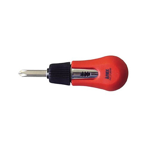 1本で[[(+)]]No.1、[[(+)]]No.2、[[(+)]]No.3、[[(-)]]6の4種類のねじが回せるラチェットドライバーです。