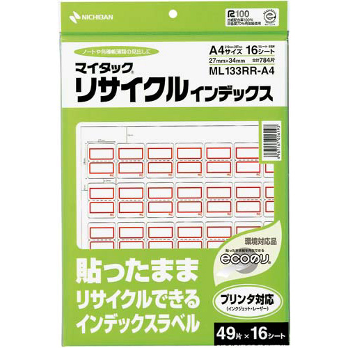 書類に貼ったまま再生処理できる、環境にやさしいインデックス。モノクロレーザープリンタ、インクジェットプリンタ、熱転写プリンタで印刷できます。