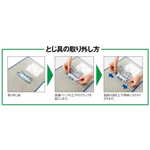 キングファイルの人気商品!とじ具を簡単、キレイに取り外し分別廃棄できます。しかも表紙にパーツが残りません。左右どちらからでも開けられる両開きタイプです。