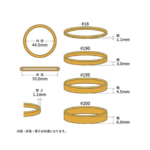 ※推奨結束範囲は、1重巻きを想定した場合の結束したい物の外周参考値となります。<保管・使用上の注意>天然ゴムを使用しています。紫外線や熱を長期間かかる場所でご使用されると輪ゴムが切れる場合がございます。直射日光および高温多湿な場所をさけて保管してください。