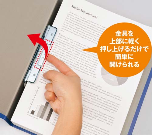 キングファイルの人気商品!とじ具を簡単、キレイに取り外し分別廃棄できます。しかも表紙にパーツが残りません。左右どちらからでも開けられる両開きタイプです。