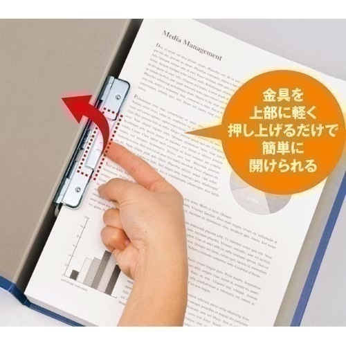 キングファイルの人気商品!とじ具を簡単、キレイに取り外し分別廃棄できます。しかも表紙にパーツが残りません。左右どちらからでも開けられる両開きタイプです。