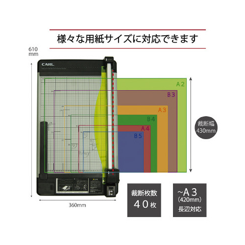 集光式紙押さえ板により裁断位置がわかりやすく正確な裁断が可能です。