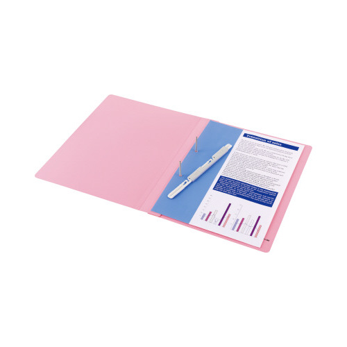 とじ足は自然に直立するスプリング製で書類の抜き差しが簡単。とじ具は片手で開閉可能なスライド機構。