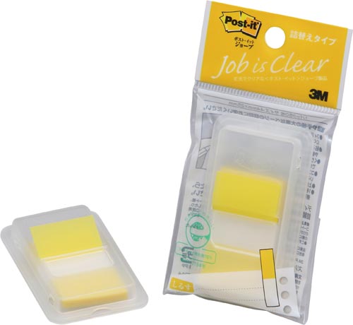 丈夫で破れにくいフィルムふせんのレギュラーサイズ。使い切ったら詰替えできるケース入りで、携帯にも便利です。同じケースに、レギュラーサイズ、ハーフサイズどちらでも詰替えることができます。
