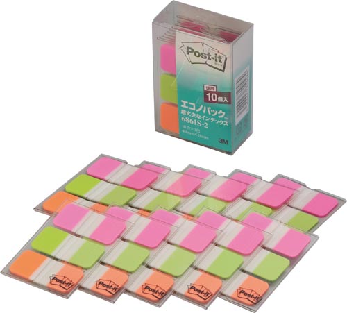 しっかりした厚口フィルム仕様なので、本や雑誌、資料ファイルの外に出ていても折れにくく安心です。閲覧頻度が高い資料や長期間使用する書類の見出しに最適です。お得な10個パック。