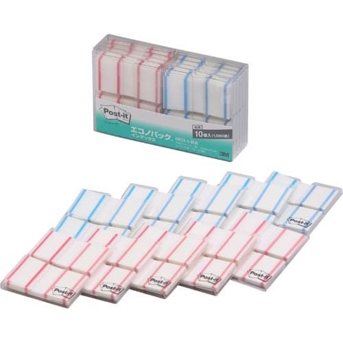 インデックス用の記入スペースを設けた、じょうぶで破れにくいフィルム素材のポストイット。シンプルな白地の幅広サイズなので、文字が書込みやすい。1枚ずつ連続して取り出せるポップアップ式。お得な10パック入