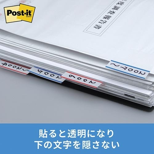 インデックス用の記入スペースを設けた、じょうぶで破れにくいフィルム素材のポストイット。シンプルな白地の幅広サイズなので、文字が書込みやすい。1枚ずつ連続して取り出せるポップアップ式。お得な10パック入