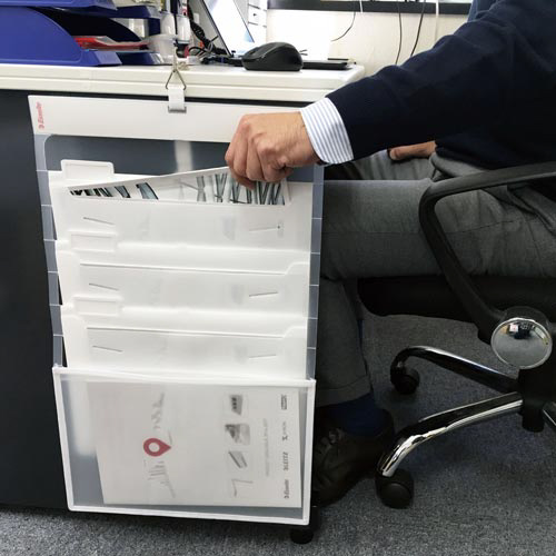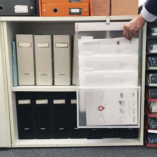 書類を省スペースで分類して収納できる壁掛けファイル。ポケットは取り外せるので、必要な分だけ持ち運びOK。3段タイプは店頭や医院の受付、デスクサイドスペースにもおすすめ。
