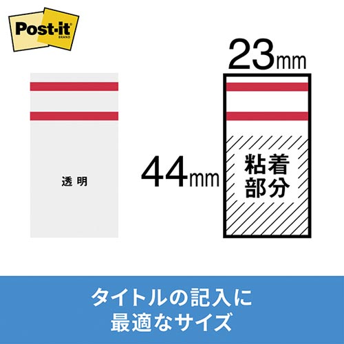 インデックス用の記入スペースを設けた、じょうぶで破れにくいフィルム素材のポストイット。シンプルな白地の幅広サイズなので、文字が書込みやすい。1枚ずつ連続して取り出せるポップアップ式。