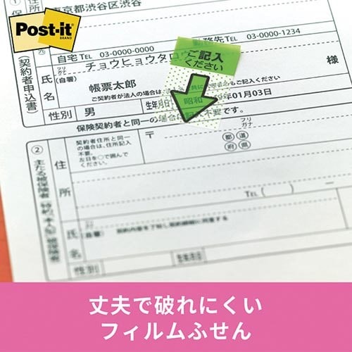 「ご記入下さい」とあらかじめ印刷されたフィルムふせん。毎回書きこむ手間がないので作業の効率化アップ!丈夫で破れにくいフィルムタイプだからくり返し使えます。