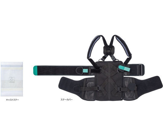 ●背部のキャストステー面と胸部ベルト、腰部ベルトの3点で支持します。
