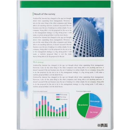 ※ご使用に際しては、中に入れる印刷物等のインクに反応して商品が変形する場合があります。インクが乾いた後にファイリングしてください。クリヤーホルダーのシート厚の表記は平均値です。製造過程で若干のばらつきが発生します。