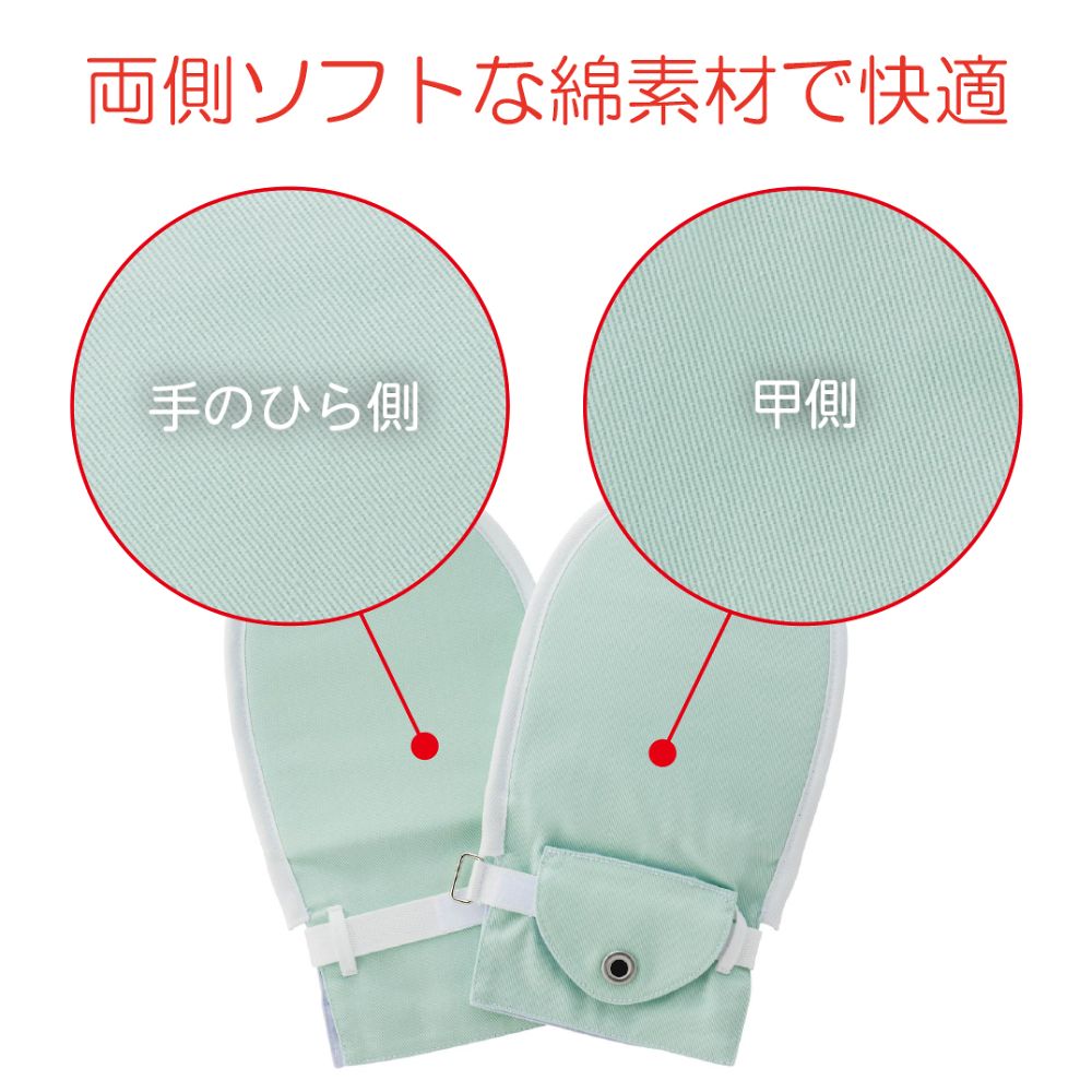 ●材質:表地/綿100%(綾織り)、裏地/ポリエステル65%・綿35%(平織り)、縁取りテープ・ベルト/ポリエステル100%、面ファスナー/ナイロン100%、ホック/医療用ステンレス