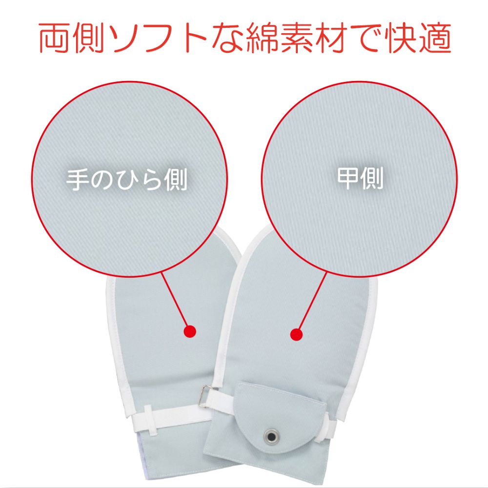 ●材質:表地/綿100%(綾織り)、裏地/ポリエステル65%・綿35%(平織り)、縁取りテープ・ベルト/ポリエステル100%、面ファスナー/ナイロン100%、ホック/医療用ステンレス