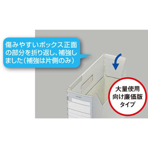 コクヨインターグレイシリーズのファイルボックス。傷みやすいボックス正面の部分を折り返し、補強しました。(補強は片側のみ)