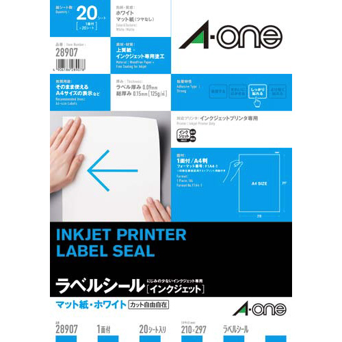 インクジェットプリンタ(IJP)で印刷できる、インクのにじみを最小限に抑える塗工をした紙ラベルシールです。ノーカットなので自由に切って使えます。