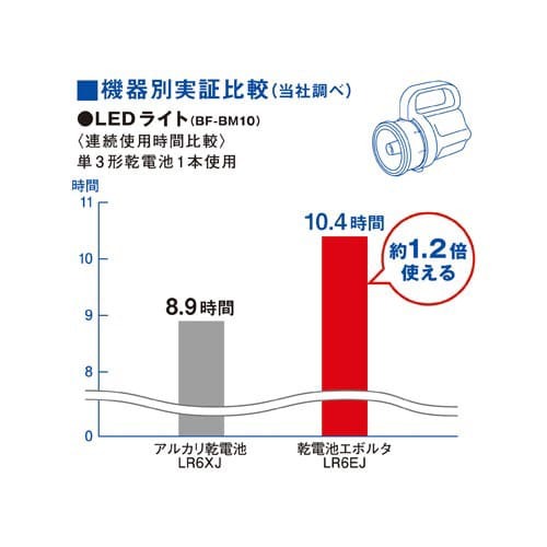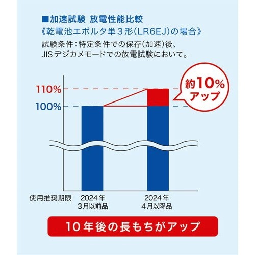 長寿命でさらにパワーも長持ち!使用推奨期限は製造から10年なので、備蓄にも最適です!