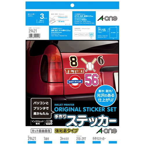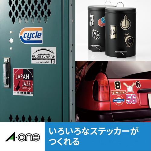 インクジェットプリンタで印刷できる、自作ステッカー用のラベルシールです。定番のホワイトフィルムラベル。透明保護フィルム付きだから傷つきにくい。耐水性・耐光性に優れています。
