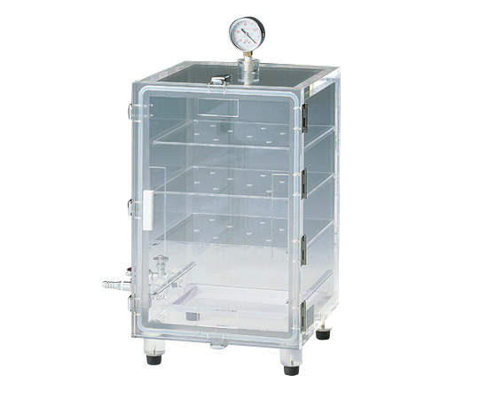 ●材質:本体/透明強化PMMA(アクリル)(板厚:25mm)、バルブ・真空計取り付け部/PC(ポリカーボネート)