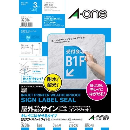 インクジェットプリンタ(IJP)で印刷できる、屋外でも使えるホワイトフィルムラベルシールです。きれいにはがせる糊を使用。耐水性、耐光性に優れています。UVカット保護カバー付きだから、色あせしにくい。