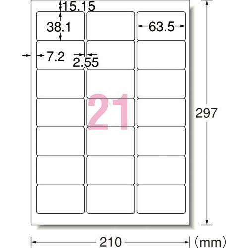 紙ラベル レ-ザ-用 A4 21面余白角丸100枚