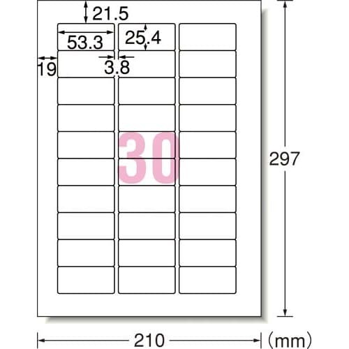 ●種別/レーザープリンタ用、30面四辺余白付角丸