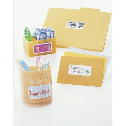 レーザープリンタで印刷できる、トナーがしっかり定着する塗工をした紙ラベルシールです。耐熱性に優れた粘着剤使用で、粘着剤のはみだしによるドラム汚れはほとんどありません。宛名ラベル、表示ラベル作成に。