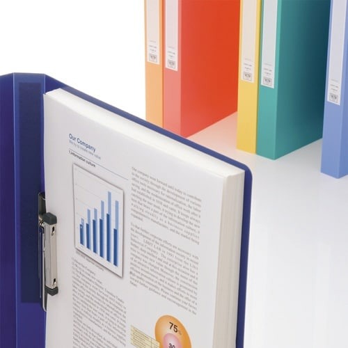 リヒトラブのZ式ファイル。強力金具の採用でコピー用紙約160枚もの書類を収納。