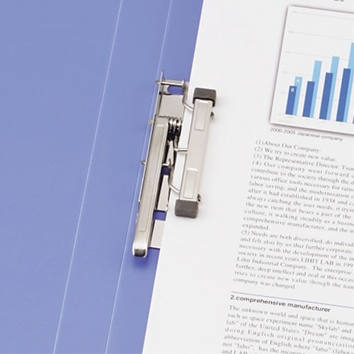 リヒトラブのZ式ファイル。強力金具の採用でコピー用紙約160枚もの書類を収納。