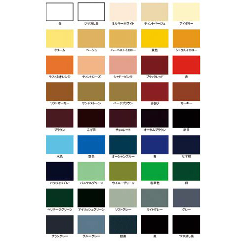 ●成分/フッ素樹脂配合水性シリコンアクリル樹脂、顔料、紫外線劣化防止剤、防カビ剤、サビ止め剤、水