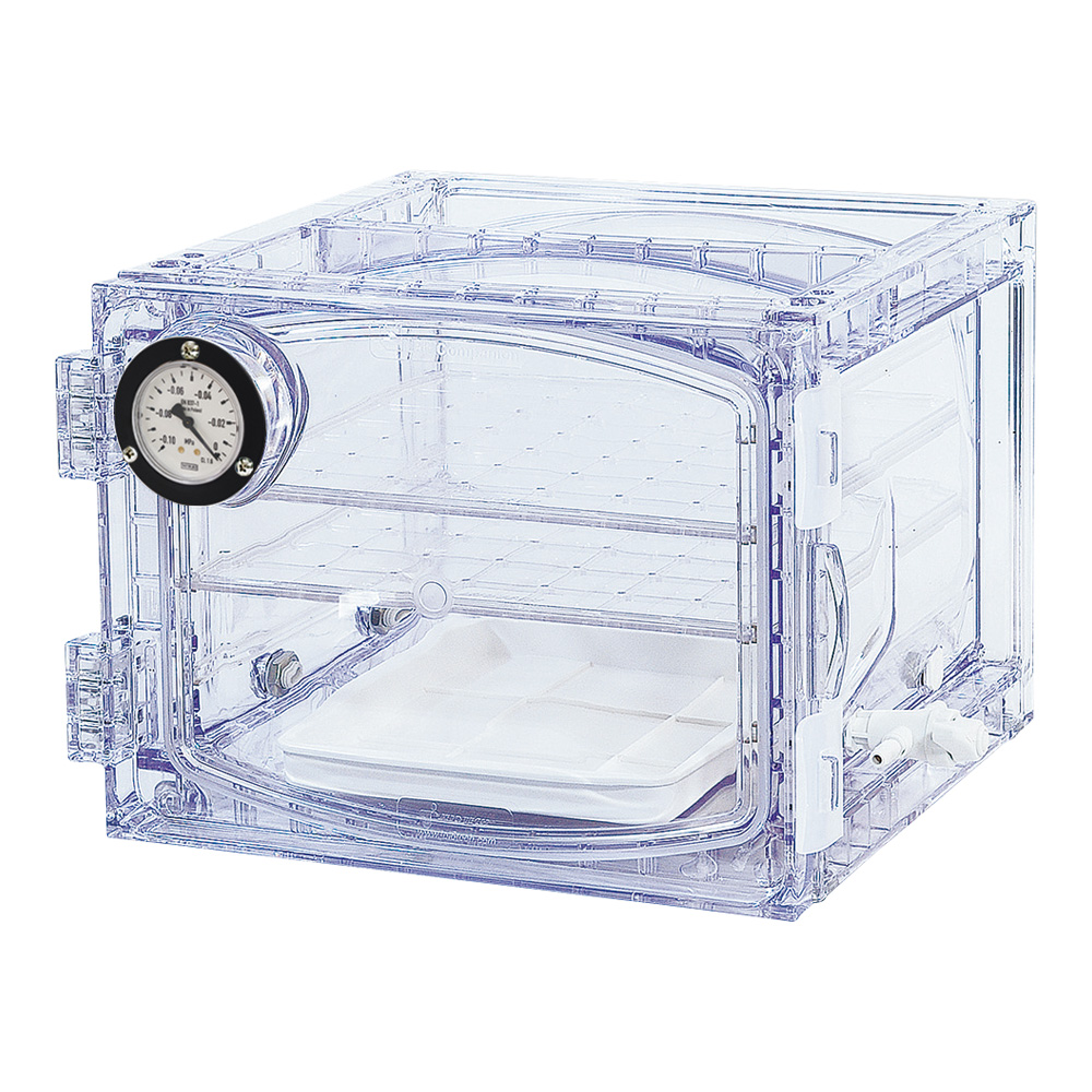 ●付属品:シリカゲル皿×1枚、プラグ×4個、真空バルブ×1個、真空ゲージ×1個、棚板×2枚