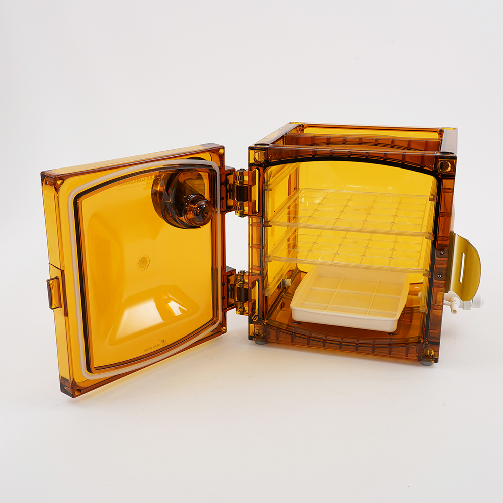 ●材質:本体・棚板/PC(ポリカーボネート)、シリカゲル皿/PP(ポリプロピレン)、パッキン/シリコンゴム