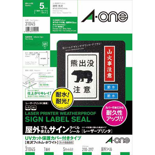 レーザープリンタ(LBP)で印刷できる、屋外でも使えるホワイトツヤ消しフィルムラベルシール。付属のUVカット保護カバーフィルムを貼り合わせることで、さらに長持ちします。耐水性、耐光性に優れています。