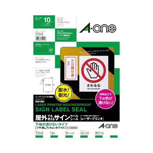 レーザープリンタ(LBP)で印刷できる、屋外でも使えるホワイトツヤ消しフィルム素材のラベルシールです。下の文字や柄が透けないようラベルの糊面にグレーの印刷を施しています。耐水性、耐光性に優れています。