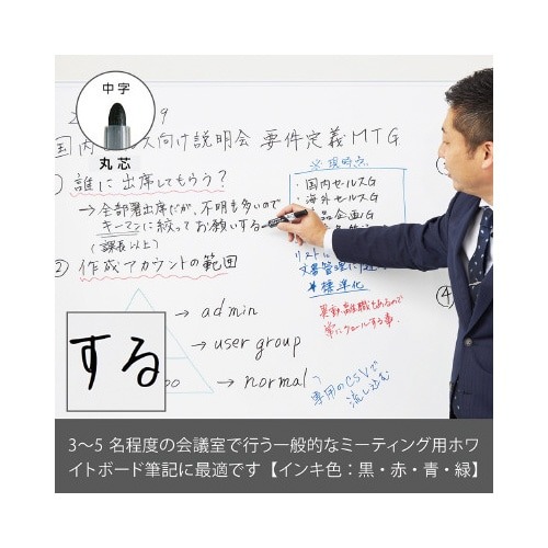 ホワイトボードマーカー ノックル 中字丸芯 黒5本