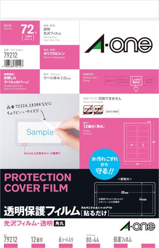 透明フィルムを使用した保護用のラベルです。ラベルの上に貼ることで、水・汚れ・こすれからラベルの表面を守ります。