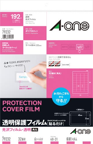 透明保護フィルム 48×31mm 32面 6枚
