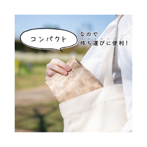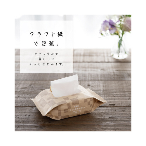 紙包装ソフトパック型のティシュー。脱プラで環境にもやさしい。ごみもかさばらず、そのまま捨てられて便利。ふんわりとした上質な肌触りのカシミヤティシュー。持ち運びに便利なコンパクトサイズ。50組入り。
