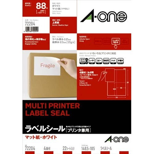 各種プリンタ兼用で印刷できる、上質紙素材のラベルシールです。「エーワン」の定番表示用ラベル。