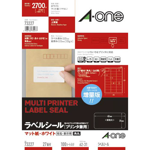 ●種別/プリンタ兼用、27面四辺余白付角丸