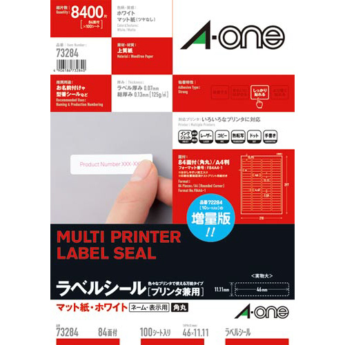 各種プリンタ兼用で印刷できる、上質紙素材のラベルシールです。「エーワン」の定番表示用ラベル。