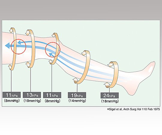 ●圧迫圧:足首/24hPa(18mmHg)、ふくらはぎ/19hPa(14mmHg)