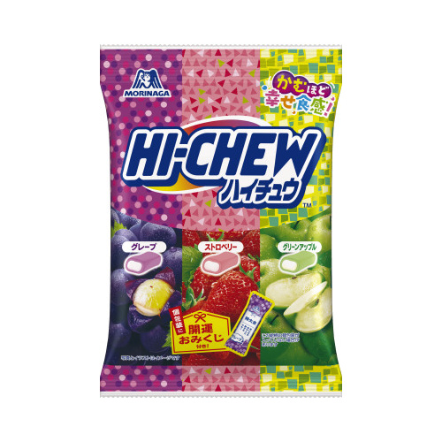 グレープ・グリーンアップル・ストロベリーのアソート。ジューシーなソフトキャンディ。