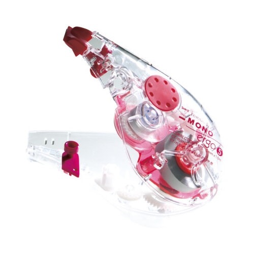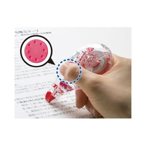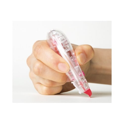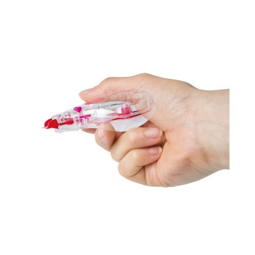 手にフィットするエルゴノミクス形状。自然と正しく握れるので、まっすぐしっかりテープが引けます。テープ残量がわかりやすいクリアボディ!