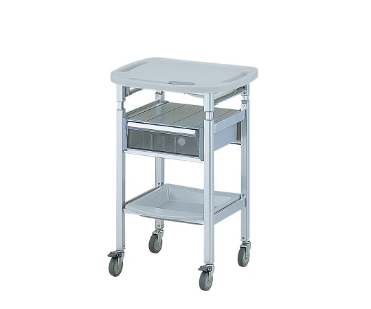 ●材質:天板・トレー/PP(ポリプロピレン)、支柱/アルミニウム(クリア・電着塗装)、引出し/PS(ポリスチレン)