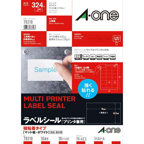 各種プリンタ兼用で印刷できる上質紙ラベルシールです。はがれやすい場所にもしっかり貼れる、強粘着タイプ。表示ラベル、宛名ラベル作成に。