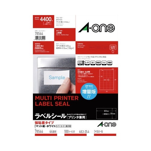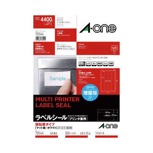 各種プリンタ兼用で印刷できる上質紙ラベルシールです。はがれやすい場所にもしっかり貼れる、強粘着タイプ。表示ラベル、宛名ラベル作成に。