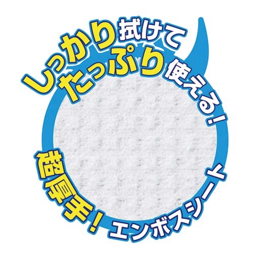 しっかり拭けて、たっぷり使える!超厚手エンボスシートで広い面積をしっかり掃除できます。電解水+モウソウチク抽出物で除菌&消臭!